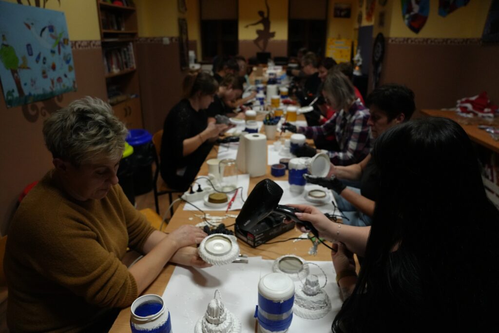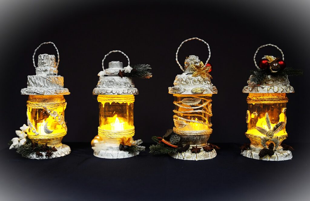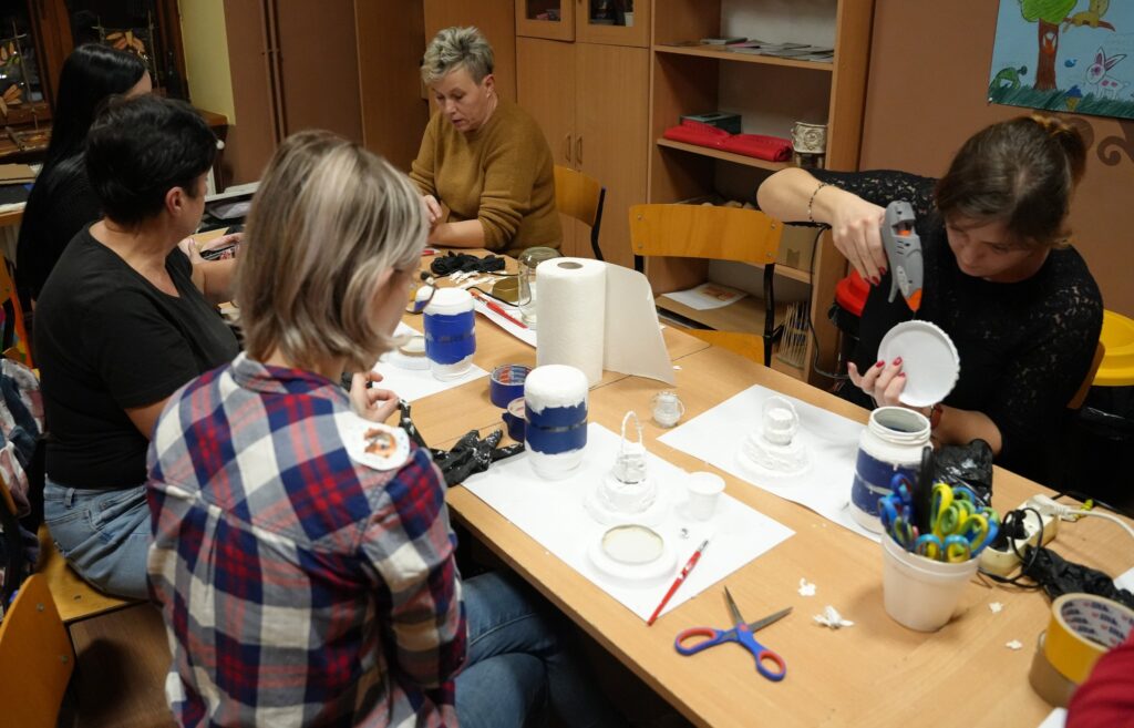 Uczestniczki naszych warsztatów mają piękne własnoręcznie wykonane i ozdobione latarenki. Panie spotkały się na warsztatach w miniony wtorek. Wystarczyło jedno popołudnie, trochę chęci, cierpliwości i kilka cennych wskazówek Pani Marzeny Mędziak, która prowadziła warsztaty, by zwykły szklany słoik zmienić w artystyczny lampion.